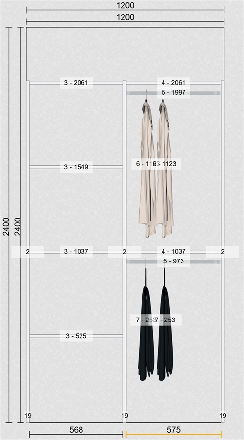 OBS: Inventar er uden bagbeklædning / inventar har standard højde på 207,4 cm. 50,5 cm. dybde