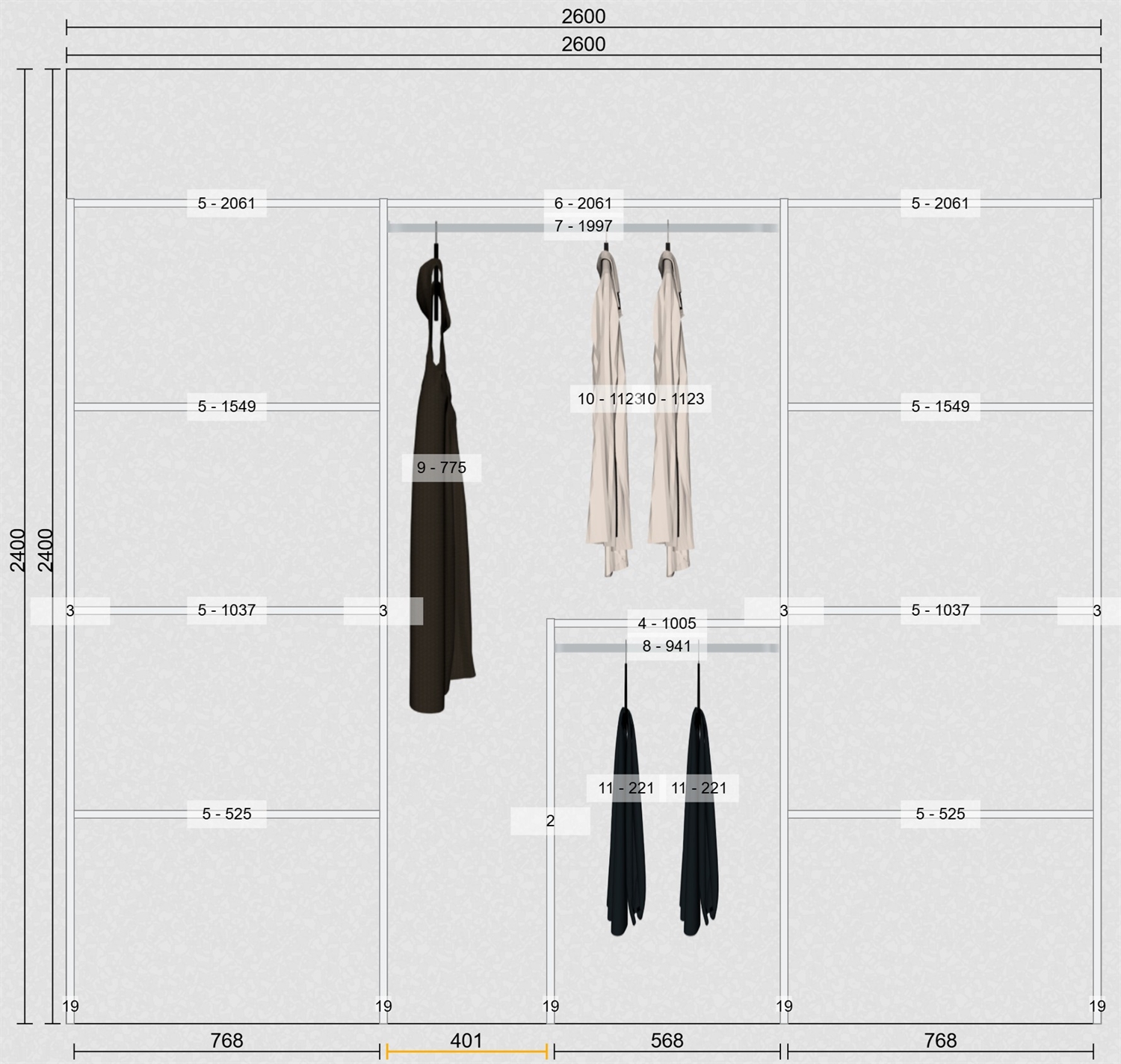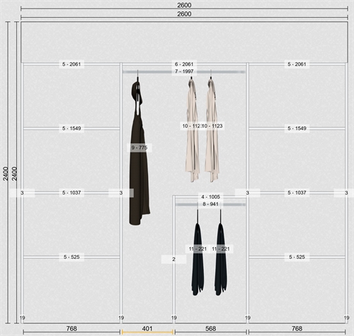 OBS: Inventar er uden bagbeklædning / inventar har standard højde på 207,4 cm. 50,5 cm. dybde