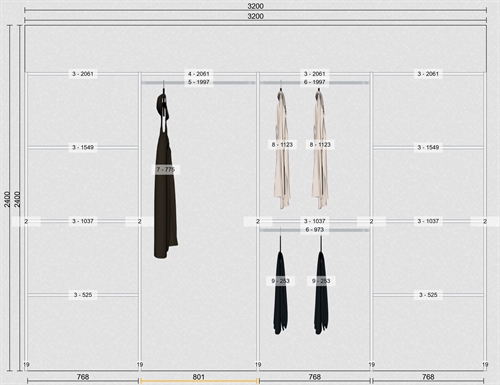 OBS: Inventar er uden bagbeklædning / inventar har standard højde på 207,4 cm. 50,5 cm. dybde