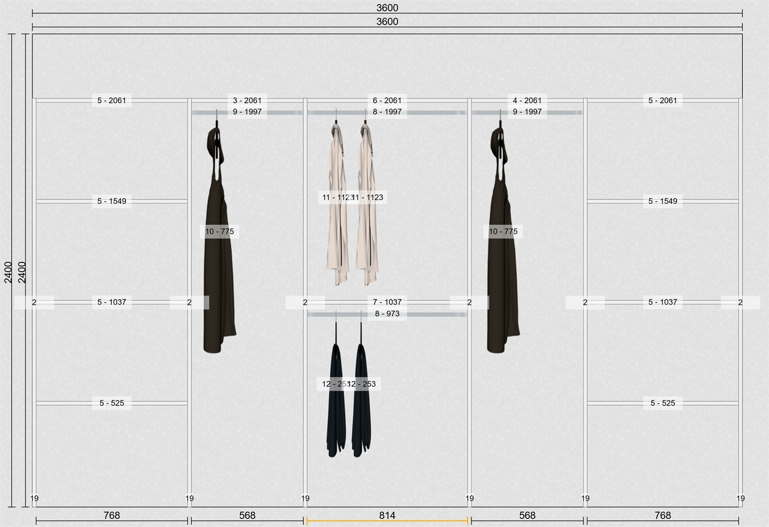 OBS: Inventar er uden bagbeklædning / inventar har standard højde på 207,4 cm. 50,5 cm. dybde