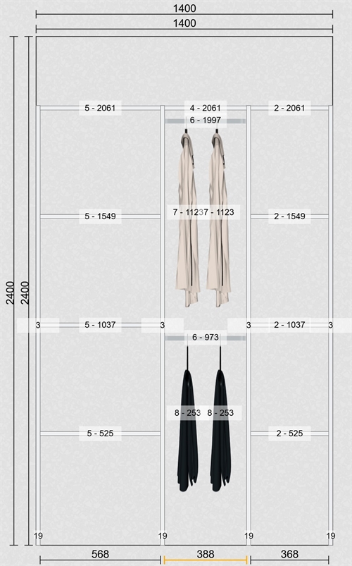 OBS: Inventar er uden bagbeklædning / inventar har standard højde på 207,4 cm. 50,5 cm. dybde