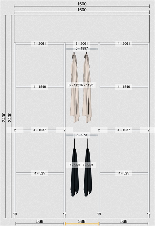 OBS: Inventar er uden bagbeklædning / inventar har standard højde på 207,4 cm. 50,5 cm. dybde
