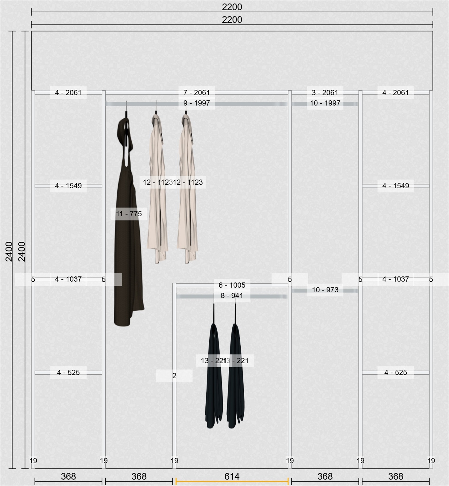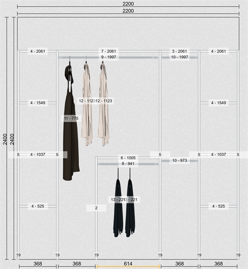 Celebert Inventar fra bredde 220 til 240 cm passer til 3 skydedøre