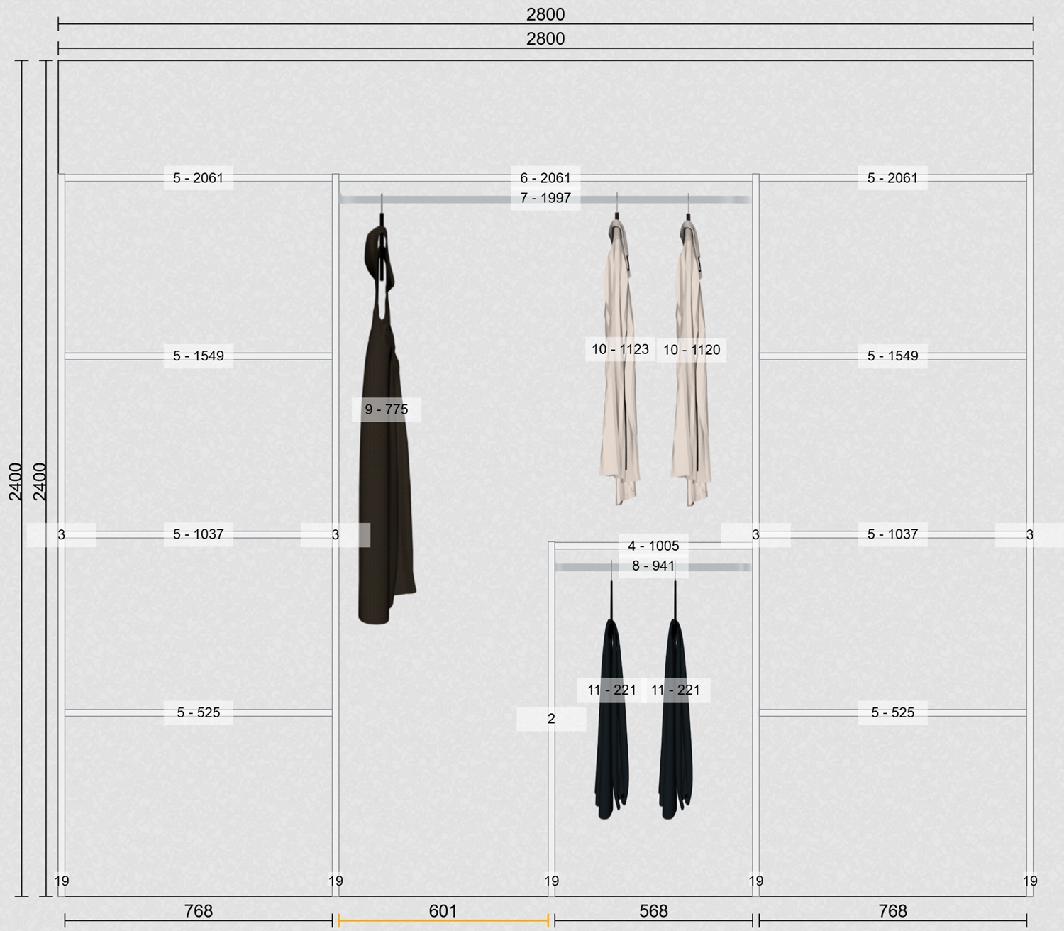 Celebert Inventar fra bredde 280 til 300 cm passer til 4 skydedøre