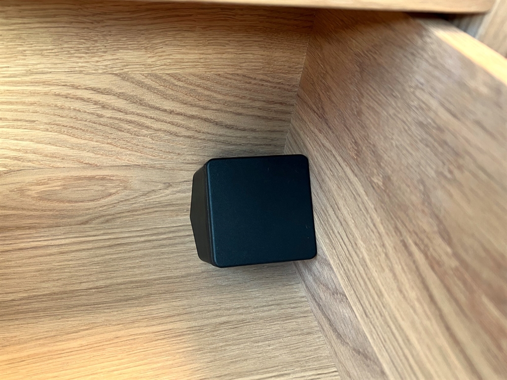 Just Wood stikkontakten gør det muligt at få et strømudtag i en skuffe eller skab. Skjult og stilrent installation bag møblerne – uden løse ledninger, uden rod.