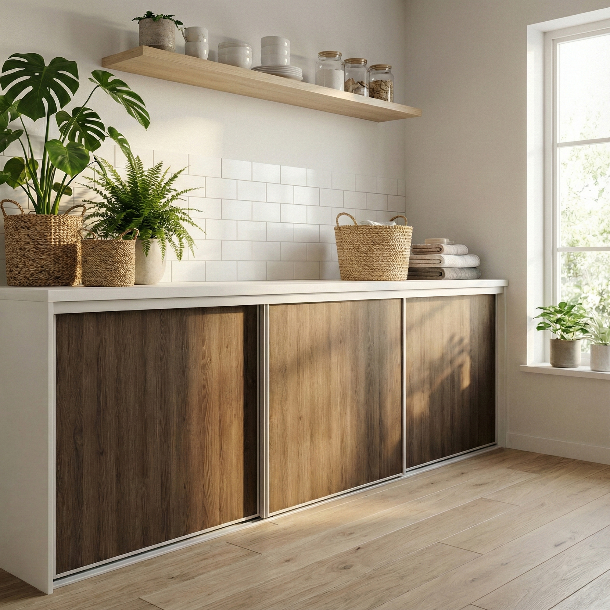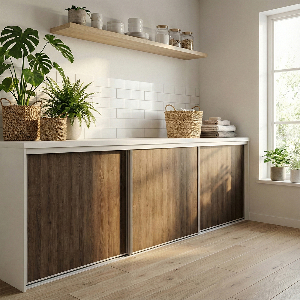 Mogensen Fashionline skydelåger på mål til garderobe med 3 låger - Total bredde 193 til 231 cm.