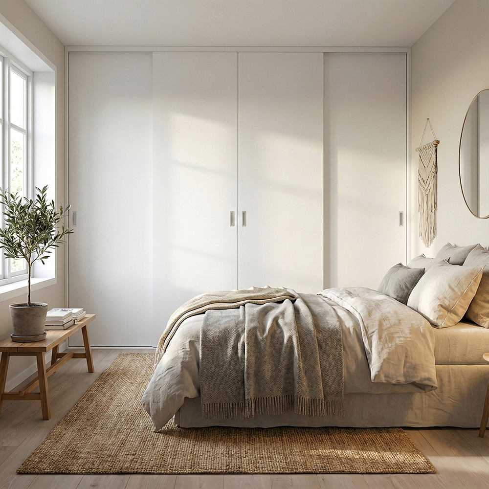 Mogensen Plano skydelåger på mål til garderobe med 2 låger - Total bredde 156 til 195 cm.