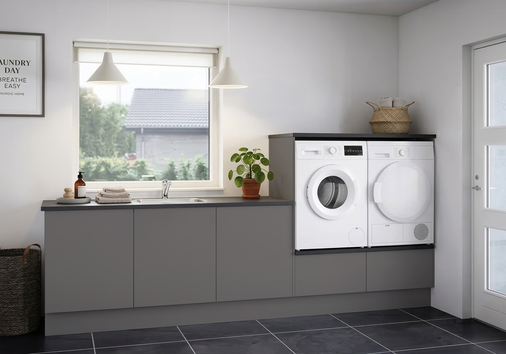 Multi-Living Bryggers sæt med Cibo Grigio | Underskab m. skuffe, Vaskeskab, Gavle, Sokkelsæt - Bryggers sæt 23