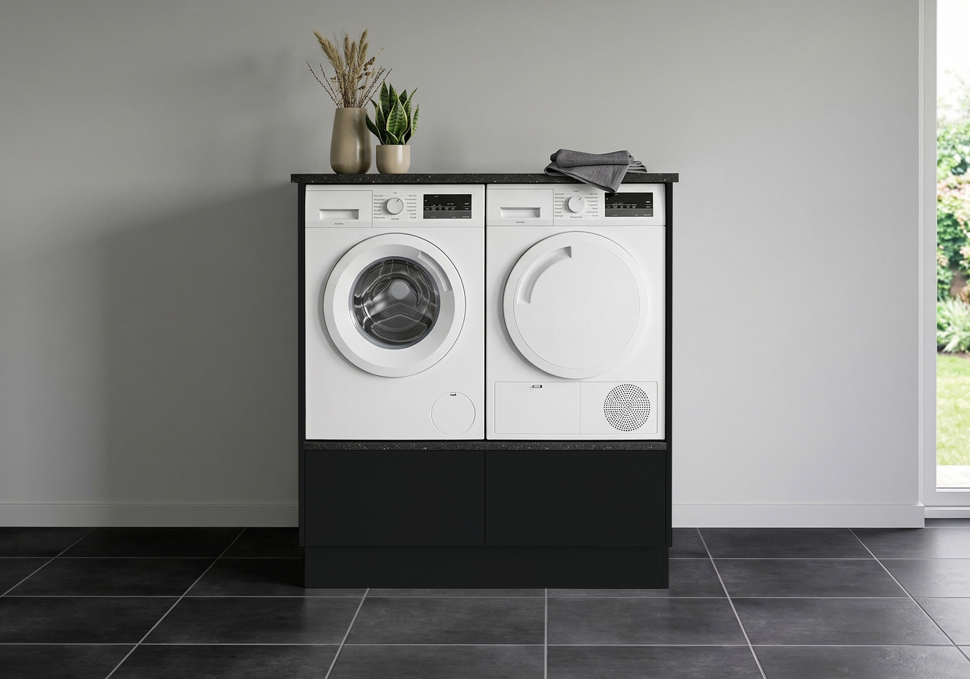 Multi-Living Bryggers sæt med Cibo Nero | Underskab m. skuffe, Vaskeskab, Gavle, Sokkelsæt - Bryggers sæt 1
