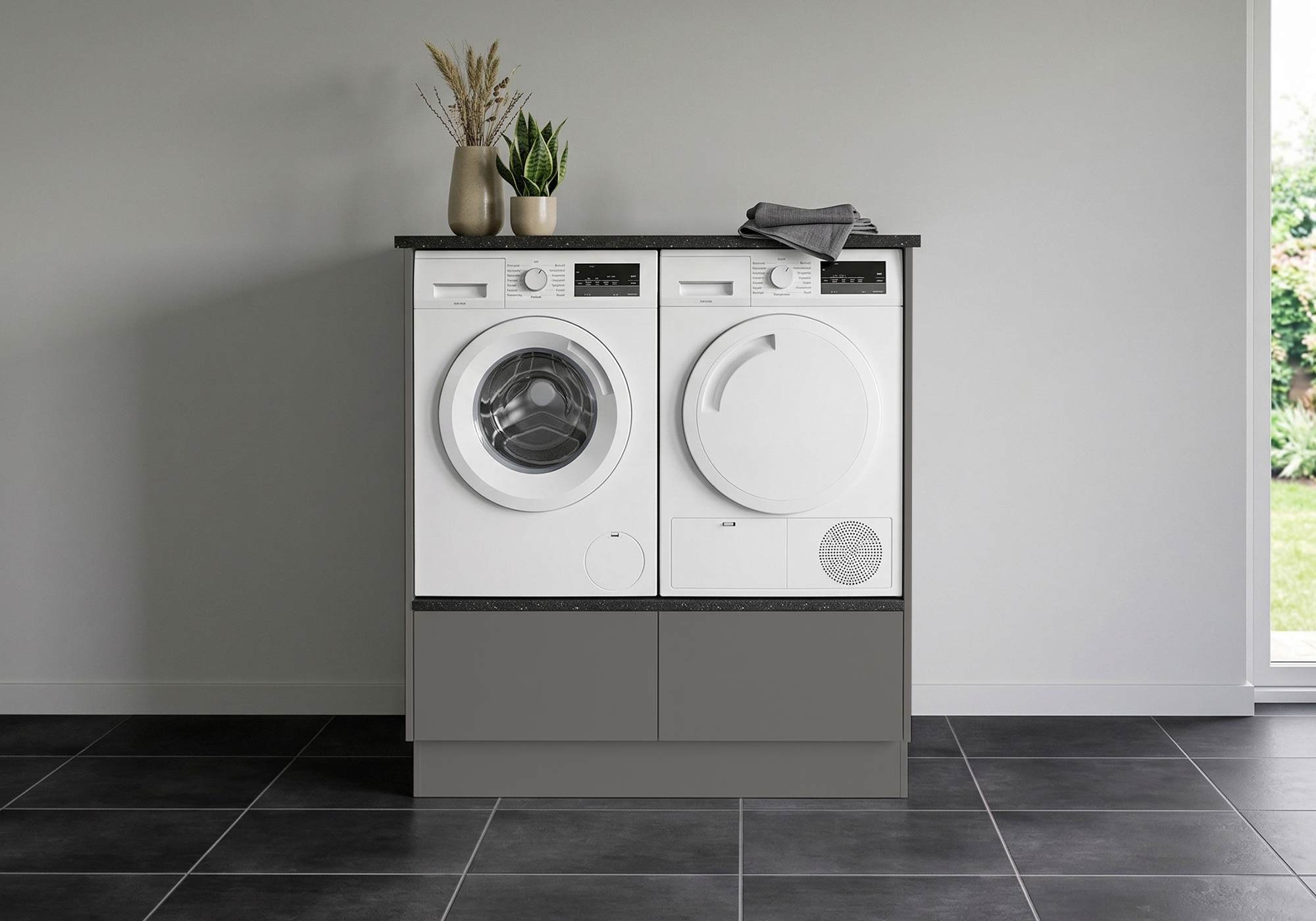 Multi-Living Bryggers sæt med Cibo Grigio | Underskab m. skuffe, Vaskeskab, Gavle, Sokkelsæt - Bryggers sæt 1