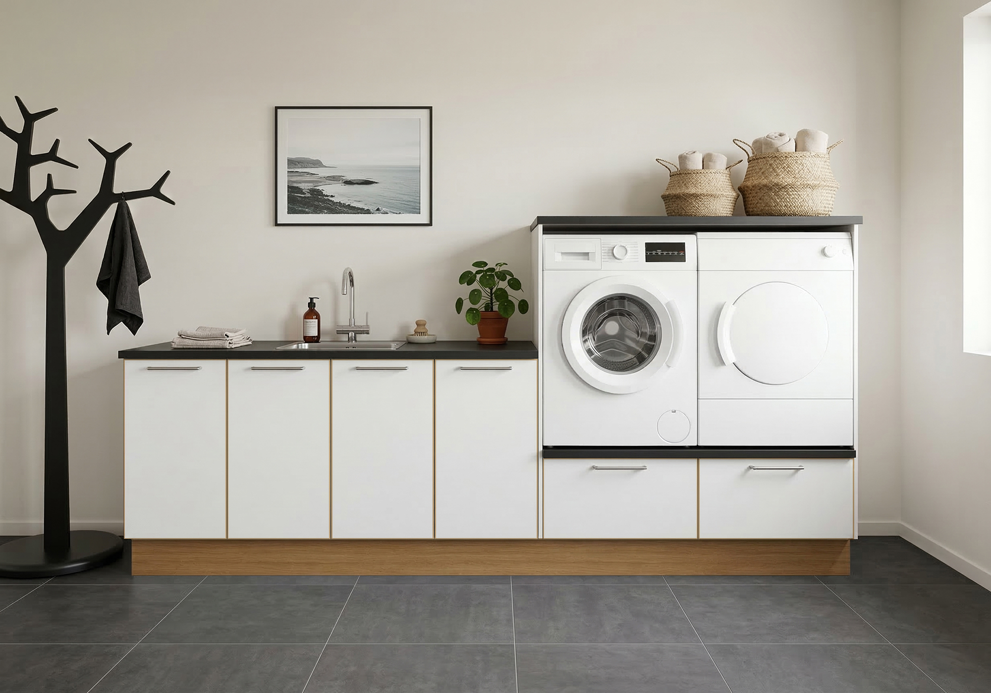 Multi-Living Bryggers sæt med London | Underskab m. skuffe, Vaskeskab, Gavle, Sokkelsæt - Bryggers sæt 1