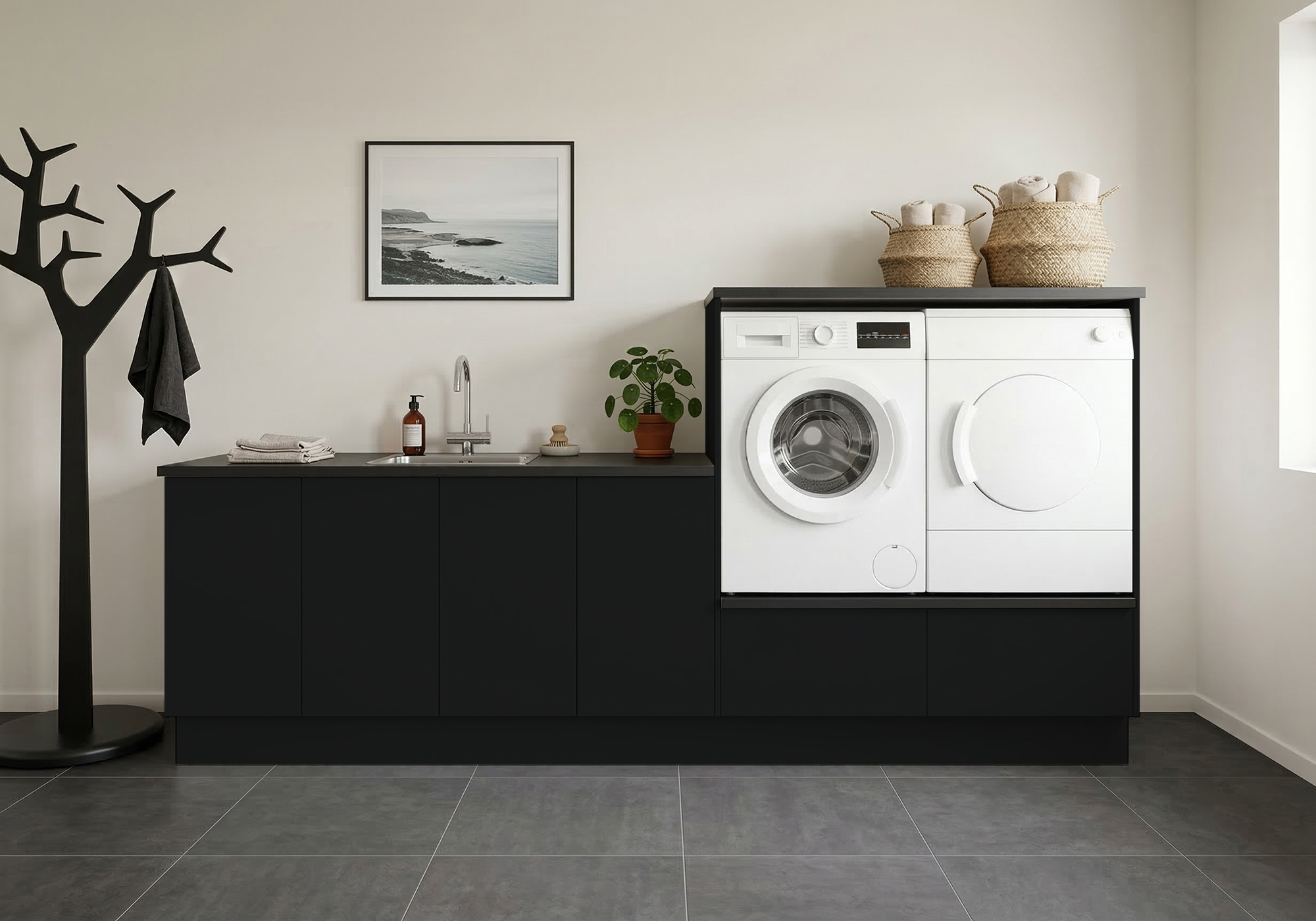 Multi-Living Bryggers sæt med Cibo Nero | Underskab m. skuffe, Vaskeskab, Gavle, Sokkelsæt - Bryggers sæt 1